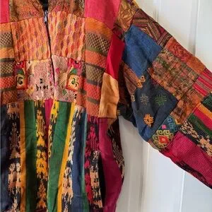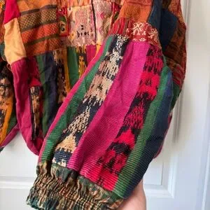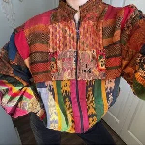 Vintage, Patchwork, Handmade, Ikat, Boho, Eclectic, Hippie, Retro, 90s, Tribal, Ethnic, Oversized, Cotton Lined, Woven, Festival, Colorful, Unisex, Bomber Jacket, Art to Wear, Unique