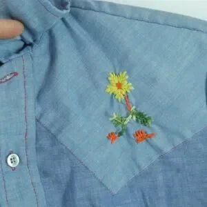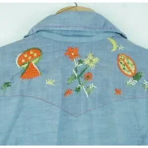 Vintage 70s Embroidered Shirt XS S Mushroom Western THRASHED Hippy Farmer Floral