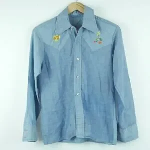 Vintage 70s Embroidered Shirt XS S Mushroom Western THRASHED Hippy Farmer