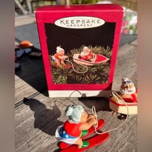 Collector, Hallmark, Christmas ornament, Lake, Santa, Mrs. Clause, skiing, Tree ornament cottage core, vintage, retro, beach ornament,