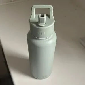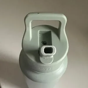 Durable mint green water bottle with convenient straw lid. Sleek, minimalist design for everyday hydration. Easy-carry handle for on-the-go use. The mint green finish offers a fresh, modern look.