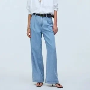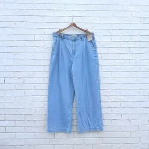 Elevate your style with these chic light blue wide-leg jeans. Perfect for any casual outing, these jeans offer comfort and a modern look. New! Women's size 32. Approximate flat lay measurements Waist 18 inches, Rise 13 inches, Inseam 29.5 inches.