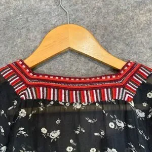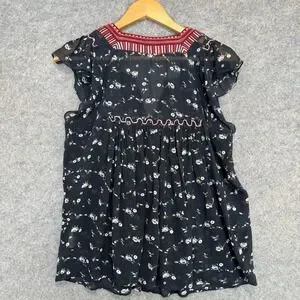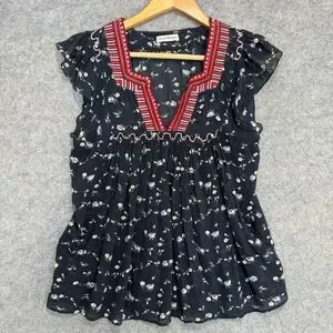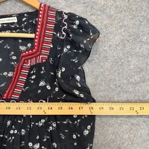 Ulla Johnson Anosha 100% Silk Blouse Womens 6 Floral Ruffle Cap Black Red Top