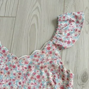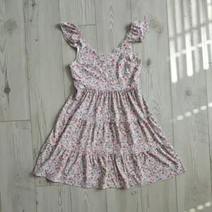 Floral Women's Dress A-Line Ruffle Straps Pink Small Monteau Los Angeles.