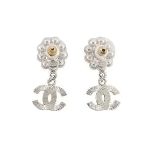 Elevate your style with these iconic Chanel CC Logo Earrings in stunning silver-tone metal. The sleek design exudes sophistication and timeless elegance, making them a perfect accessory for any outfit. The prominent CC logo adds a touch of luxury and instantly elevates your look with a touch of designer flair. Crafted with precision and attention to detail, these earrings are a must-have for fashion-forward individuals.