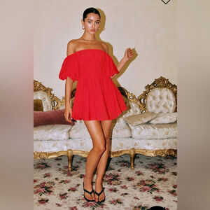 Princess Polly Red Off-Shoulder Dress mini dress puff sleeve