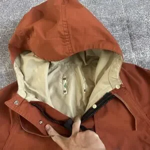 Men's Vintage 70's REI USA Burnt Orange Mountain Hooded Parka Zip Up Jacket Sz S