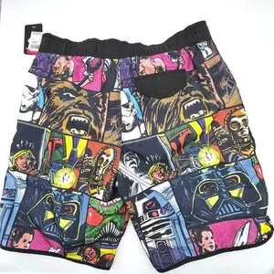 Keywords: Star Wars shorts, comic print, swim trunks, graphic shorts, summer wear, beachwear, poolside, mens fashion, licensed apparel, casual shorts, themed clothing, colorful, bright, nerd, vacation, pool party, disney cruise