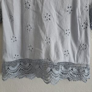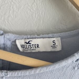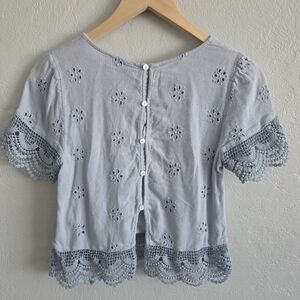 Hollister Womens Blue Embroidered Blouse Eyelet Boxy Crop Top Shirt Size Small