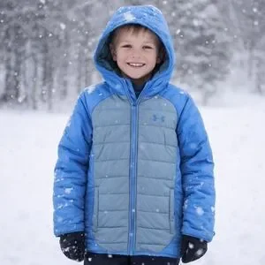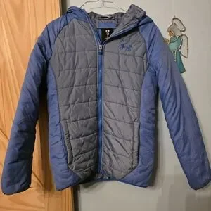 Under Armour Blue Hooded Cold Gear Puffer Jacket Sz Youth Large