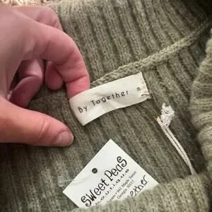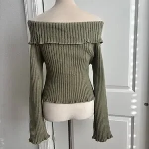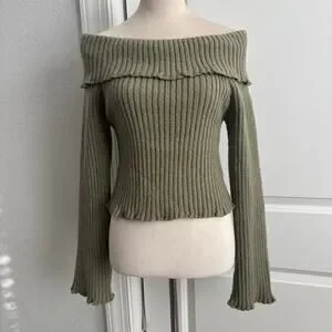 NWT By Together Off Shoulder Ribbed Knit Sweater Top m Olive Green Bell Sleeve