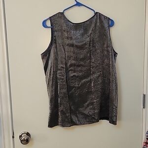 VTG ERENA Gunmetal Silver Metallic Sleeveless Satin Shell Blouse
