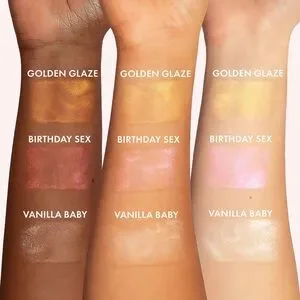 Birthday Sex body oil with niacinamide, peptides, hyaluronic acid and argan oil. Features notes of vanilla, pear, and amber.