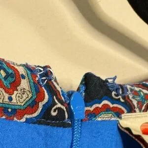 Embrace the vibrant essence of the Blue Ainika Tiles Maxi Dress, a stunning piece designed to transport you to dreamy landscapes. Delicately crafted with a flattering V neckline, this dress showcases an enchanting medley of azure hues complimented by intricate tile-inspired patterns. The fluid silhouette, featuring a cinched waist and sweeping skirt, creates an effortless dance of grace and color with every step you take.