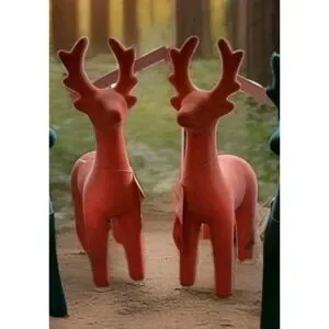 Deer Figurines in Coral Orange Joyward Flocked 9.6" Soft Feel, Set of 2 - NEW