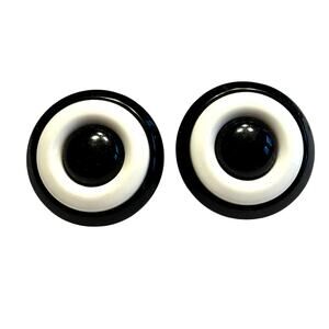 Pierced earrings retro black & white circles monochrome rounds vintage 1980s