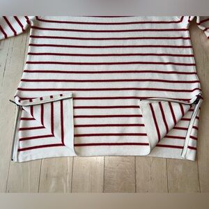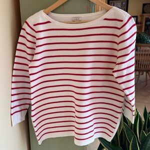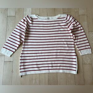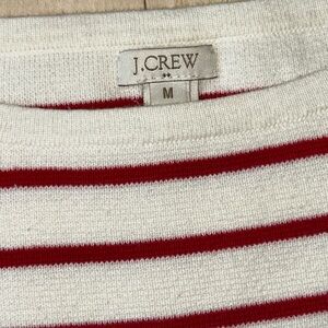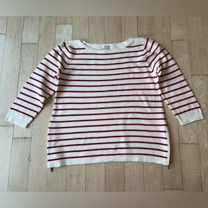 J. Crew Women’s Striped 100% Cotton Side Zip Boatneck Sweater Red White Medium