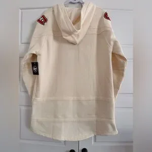 Show your team pride with the Montreal Canadiens NHL White Out '47 Brand Lacer Fleece Hoodie! This all-white, hockey-inspired silhouette is crafted from midweight fleece, ensuring cozy warmth and comfort. With a thermal-lined hood and stylish twill appliqués in team colors adorning the body, shoulders, and sleeves, this hoodie combines sporty flair with a relaxed, oversized fit. Ideal for game days or casual outings, it’s easy to care for—just cool machine wash and avoid tumble drying. Wear your colors proudly with this essential hoodie!