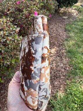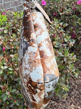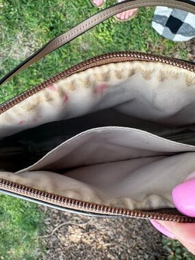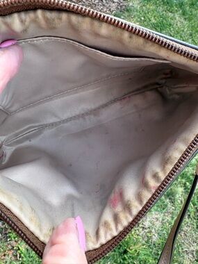 Love the colors on this hard to find wristlet. Clean and crisp on the outside exterior but needs cleaning inside, see photos.