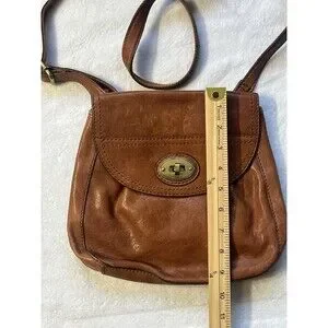 The 1954 Fossil Long Live Vintage Leather Crossbody Purse is a stylish and practical accessory for women. Made from brown caramel leather with a distressed finish, this square-shaped bag features a double turn lock closure and a gold hardware accent. The adjustable crossbody strap in brown leather adds convenience and comfort for daily use. This vintage piece from Fossil also includes a key accessory, making it a unique and fashionable choice for any occasion.