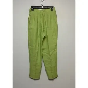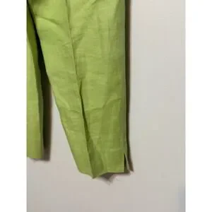 Fresh and timeless Talbots Petites Irish linen pants in a vibrant spring green shade. Crafted from 100% breathable linen, these lightweight trousers feature a clean tailored silhouette with a relaxed straight leg, perfect for warm-weather styling. The natural linen texture and classic tailoring make them ideal for coastal grandmother, old money, and European summer.