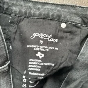 Grace & Lace button fly Black worn soft denim jeans. Eco friendly Sz 10