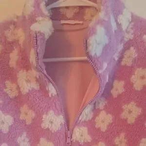 Pink Lily Purple and White Floral Sherpa Half-Zip Sweater