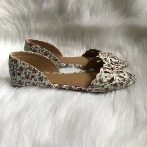 So Shoes Women’s Size 8.5 M Open Toe Rose Floral Print Slip On Flats