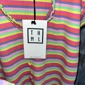 NWT THML Rainbow Ribbed Faux Button Stretch Blouse Women’s