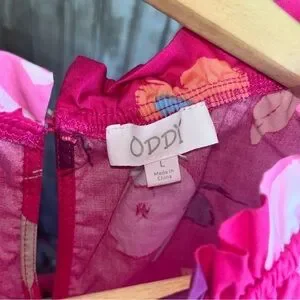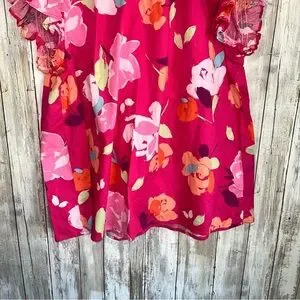 Brighten your wardrobe with this vibrant pink floral top. Featuring playful ruffle sleeves, it's perfect for any occasion.