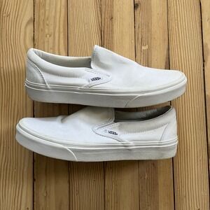 Vans Classic Slip-On White Canvas Skate Shoes Men 6.5 Womens 8.0 Low Top Sneaker