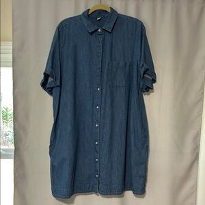 Old Navy relaxed-fit denim button-down dress. Single chest pocket and short sleeves. Lightweight, breathable fabric for casual wear.Great for casual summer outings. Can belt or let flow!