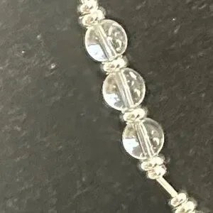 This chic silver and clear beaded necklace is perfect for adding a touch of elegance to your ensemble. Ideal for any occasion.