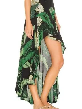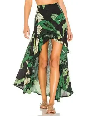 The Beach Riot Rachel skirt in black palm print is a stylish and trendy piece perfect for a beach-themed summer wardrobe. With its long length and hi-low hem, this skirt is sure to make a statement. Made by the brand Beach Riot, this skirt in size small fits true to size and is a great way to make a fashion-forward impression.