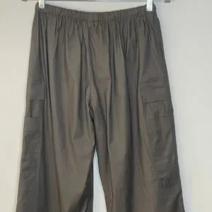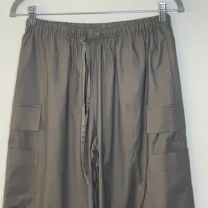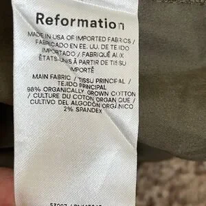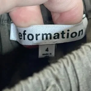 Keywords: Reformation pants, cargo trousers, wide leg pants, olive green, drawstring waist, utility pants, casual wear, streetwear, comfortable, fashionable, summer pants, fall fashion