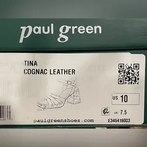 Paul Green Tina Cognac Leather Cork Block Heel Sandals Ankle Strap Sz 10 BNWB