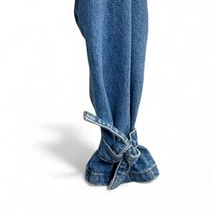 Super cute Maeve by Anthropologie cropped denim jacket featuring puff sleeves and adjustable bow-tie cuffs for a unique, feminine look π€