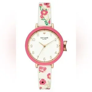 NWT Kate Spade New York Park Row Floral White Pink Silicone Strap Watch 34mm