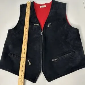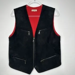 Vtg Ann Taylor Vest Full Zip Leather Size M Black Suede Fleece Lined