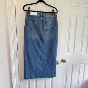 Brand new with tags American Eagle Outfitters denim maxi skirt featuring a trendy low-rise fit and front slit.