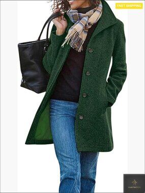 Wool Blend Pea Coat Classic Stand Collar Single Breasted Winter Mid Long