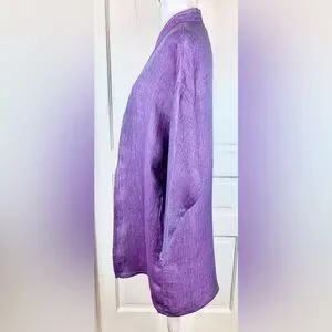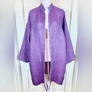 Eileen Fisher Purple Irish Linen Open Front Jacket - Kimono - Cardigan