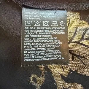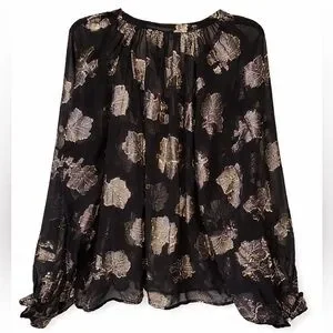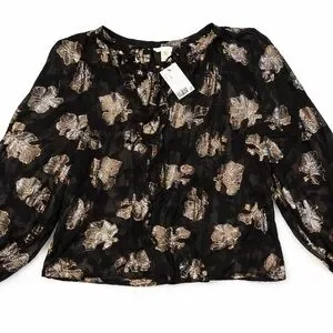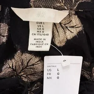 H&M Blouse black sheer gold metallic print size L
