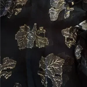 H&M semi-sheer black blouse with metallic gold leaf print