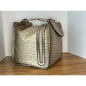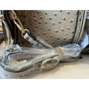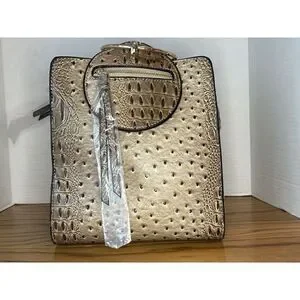 VERSONA Women’s Nude Faux Leather Faux Crocodile Textured Purse Handbag Tote Bag; approximate measurements: 10" x 9" x 9"