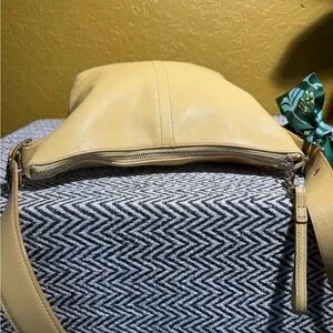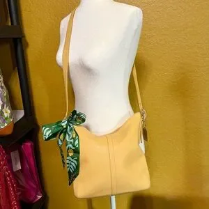 A beautiful, minimalist "North-South" silhouette from the 2003 Legacy collection. This set features Coach’s iconic glove-tanned leather in a rare and cheerful butter-yellow hue.