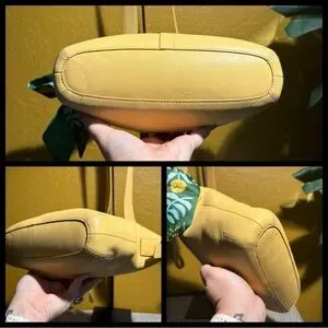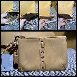 • Includes: Matching leather wristlet with grommet details, original silver-tone metal hangtag, coordinating unbranded purse scarf, and unbranded dust bag.