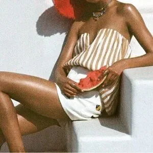 Strapless linen-blend top with vertical stripes. Sweetheart notch at the center front. Lightweight and breezy for warm days. Easy to style with shorts or skirts.100% linen