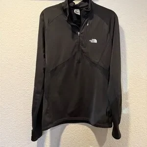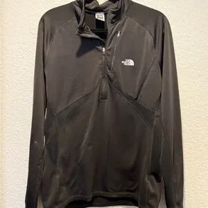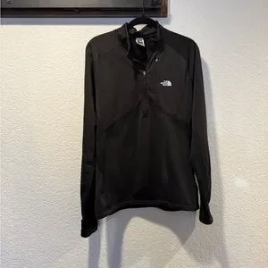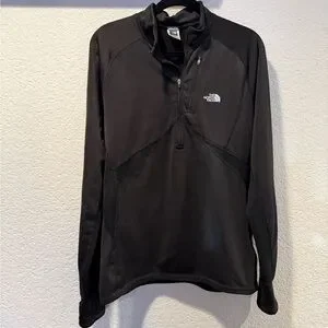 Men’s half-zip pullover by The North Face. Breathable mesh panels for ventilation. Zippered chest pocket for secure storage. Stretch fabric allows easy movement. Subtle logo on chest for brand detail.