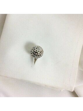 Mens Cuff Links Pair Textured Silver Chrome Sphere Golf Disco Ball Dress Formal